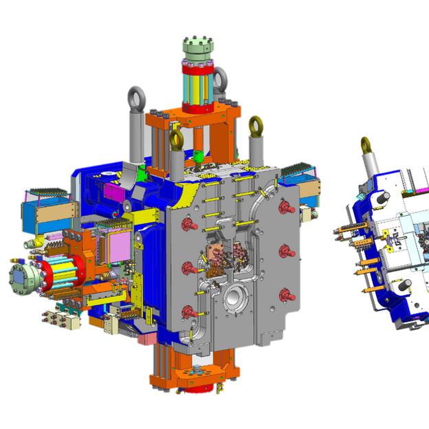 Design and manufacture of new molds ranging from 350 to 2500 tons, including specialized solutions for automotive systems, machinery, and industrial components.